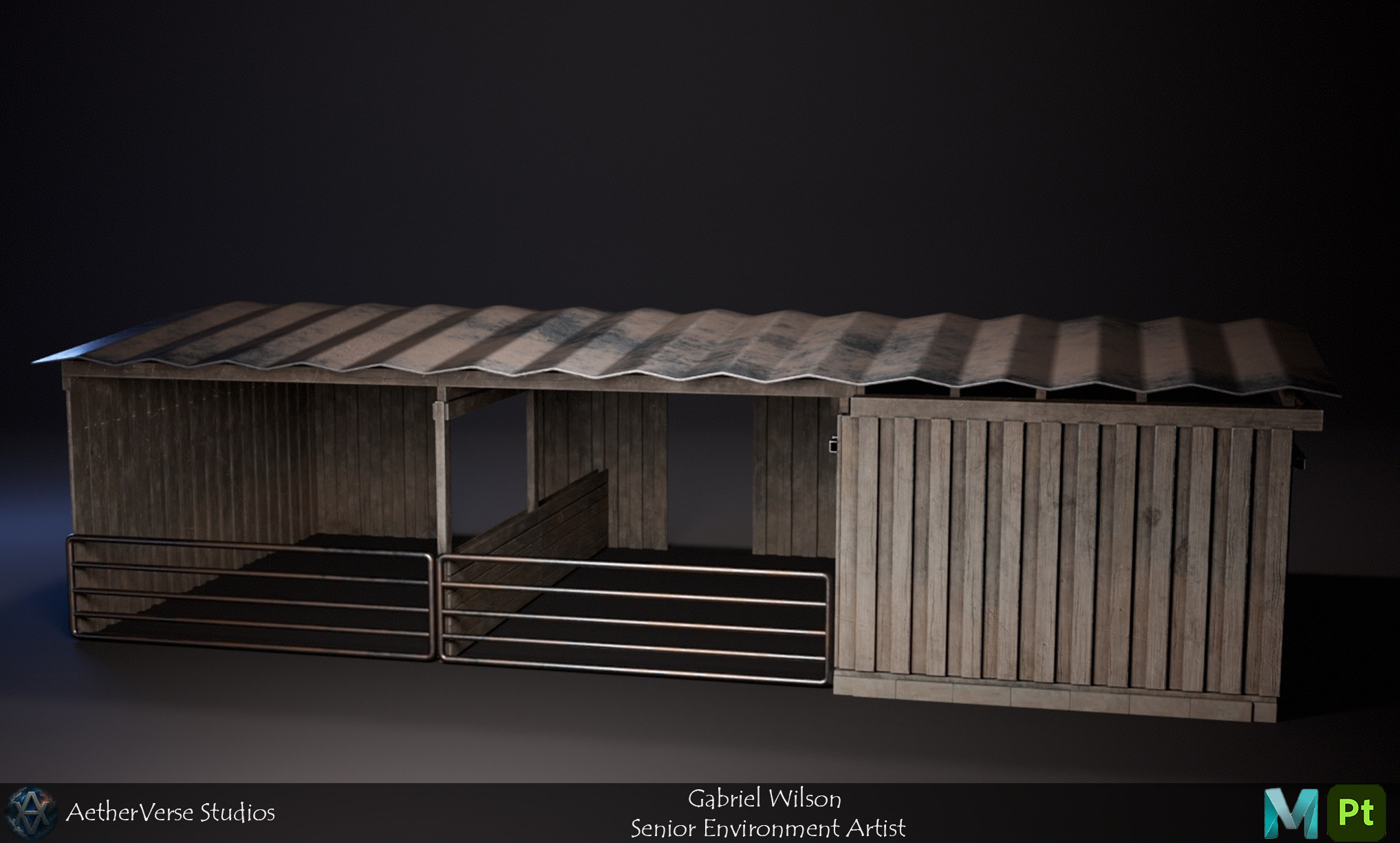 Two Horse Stall Barn created in Autodesk Maya and Substance Painter.
